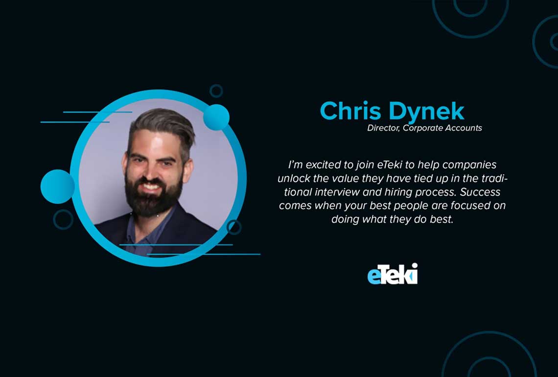 Mr. Dynek fits the culture of client relations at eTeki due to his consultative sales approach. “While eTeki is the world’s largest and most trusted technical interviews-as-a-service platform, our services are not for every company. Chris’ expertise in evaluating bottlenecks within major market enterprises will assure new eTeki clients attain improved recruiting results and stakeholder needs are met,” said Founder, Bala Nemani.